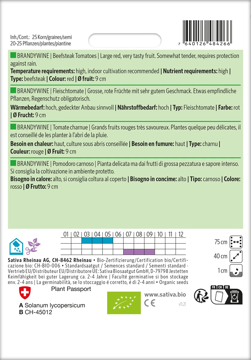 75 cm zwischen den Reihen, 40 cm in der Reihe