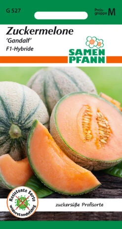 Sehr frühe Mini-Cantaloupemelone mit orangem Fleisch. Süß wie Honig. Produziert 3 bis 4 kleine Melonen pro Pflanze. Kompakte, buschige Sorte mit wenig Platzbedarf, ideal für Topfkultur oder den kleinen Garten. Gewicht 400-600g.