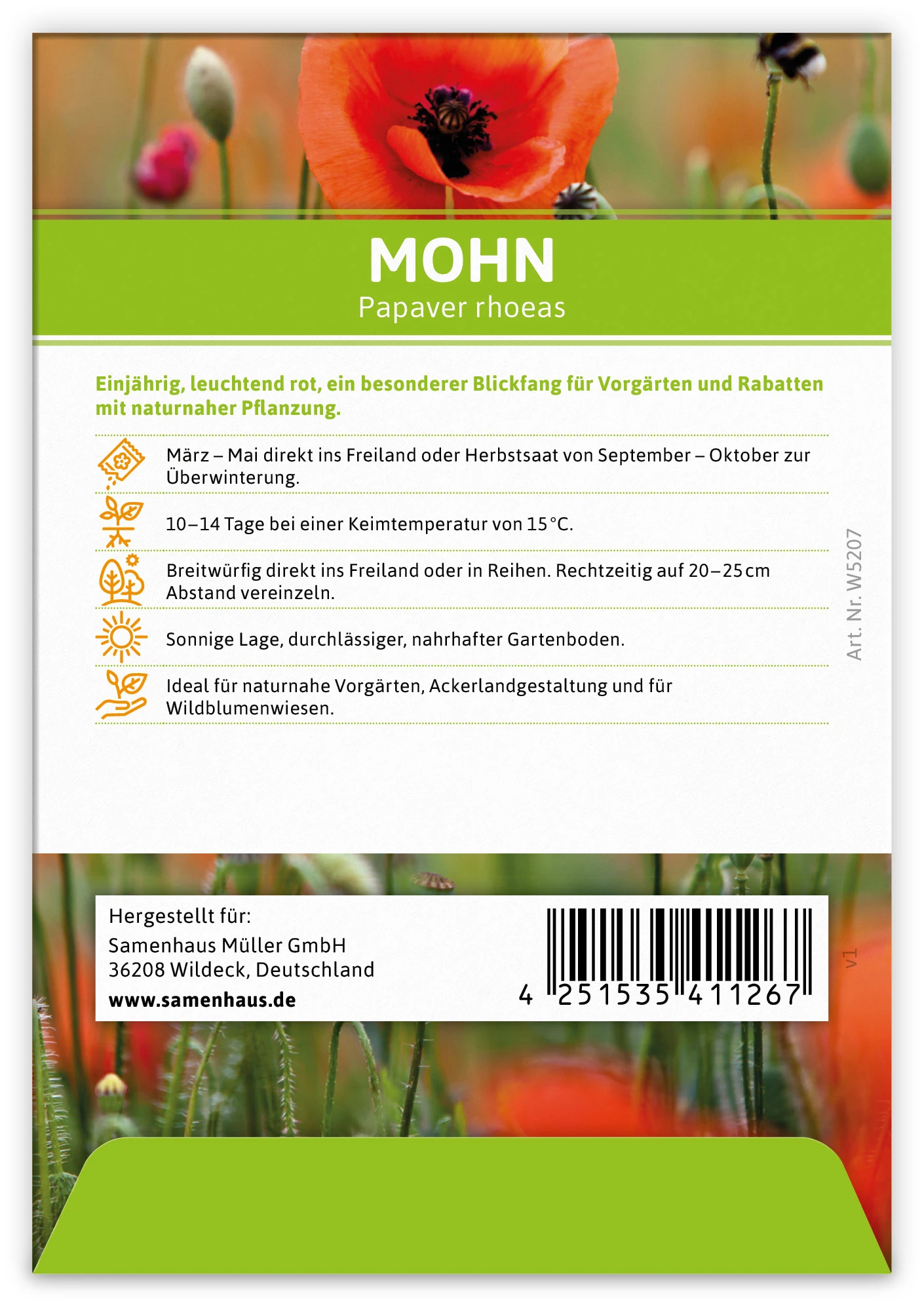 Ideal für naturnahe Vorgärten, Ackerlandgestaltung und für Wildblumenwiesen.