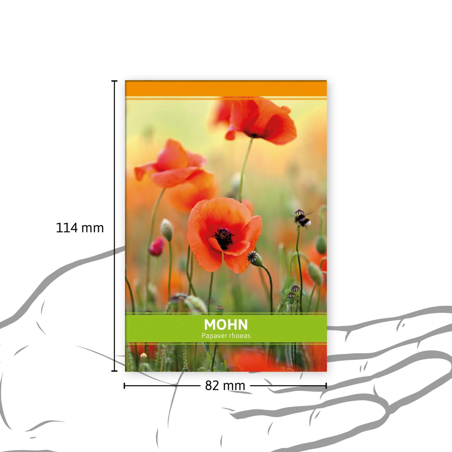 Wilder, roter Mohn ist mit seinen zarten Blüten ein Blickfang, nicht nur für Insekten und Schmetterlinge. Die wunderschönen Blüten gestalten auch die Samentütchen. Sind Sie auf der Suche nach einem Werbegeschenk, Gastgeschenk oder Give Away, ist der Mohnsamen eine schöne Geste. Ihre Danksagung oder Ihr Logo können Sie einfach mit einem Aufkleber aufbringen.