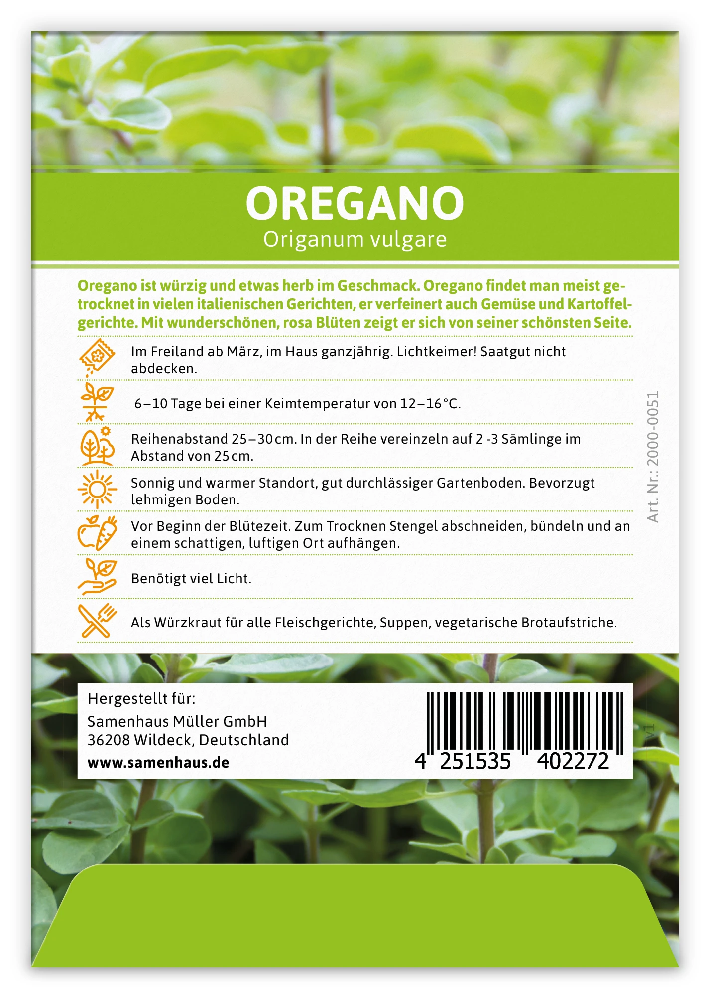 Oregano ist würzig und etwas herb im Geschmack. Oregano findet man meist getrocknet in vielen italienischen Gerichten, er verfeinert auch Gemüse und Kartoffelgerichte. Mit wunderschönen, rosa Blüten zeigt er sich von seiner schönsten Seite.
