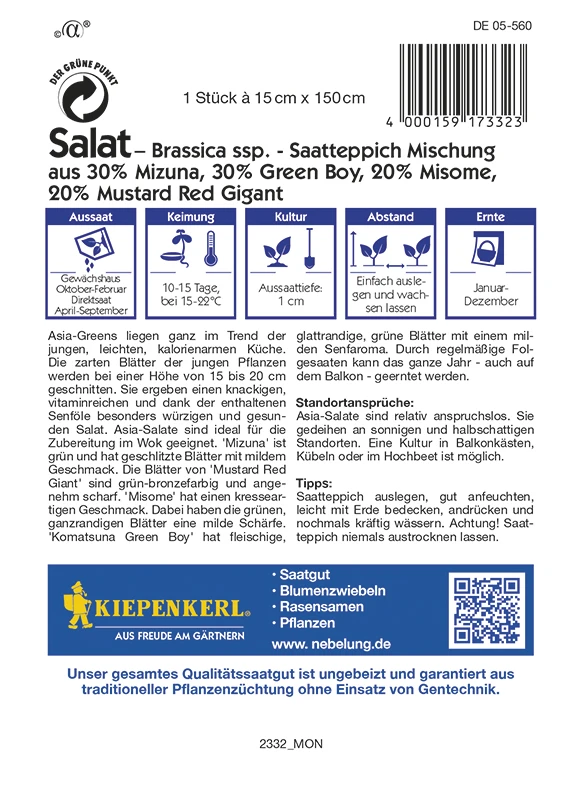 Salat Asia Spicy Green Mix (Saatteppich) | Salatsamen Von Kiepenkerl