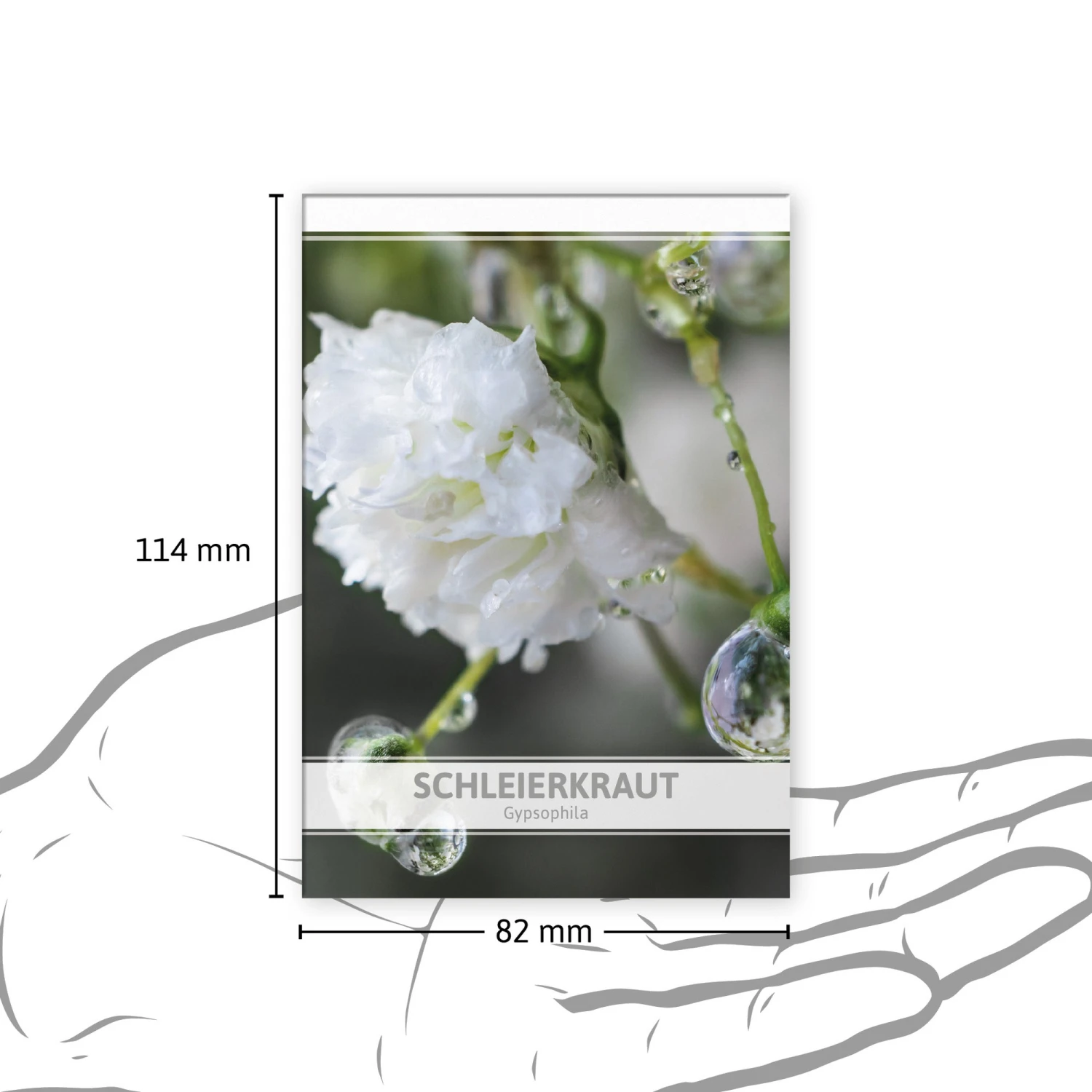 100 Samentütchen Schleierkraut – diese setzen im Garten und auf dem Balkon besonders duftige Akzente. Die weiße Blütenpracht erinnert von Weitem an eine weiße Wolke, die am Himmel treibt. Schleierkrautsamen ist ein Werbegeschenk oder Gastgeschenk, das von Herzen kommt. Die dezent gestalteten Samentütchen eignen sich gut für Trauerfeiern und Bestattungshäuser. Ihre Werbung oder Dankesworte können Sie mit einem Aufkleber aufbringen.