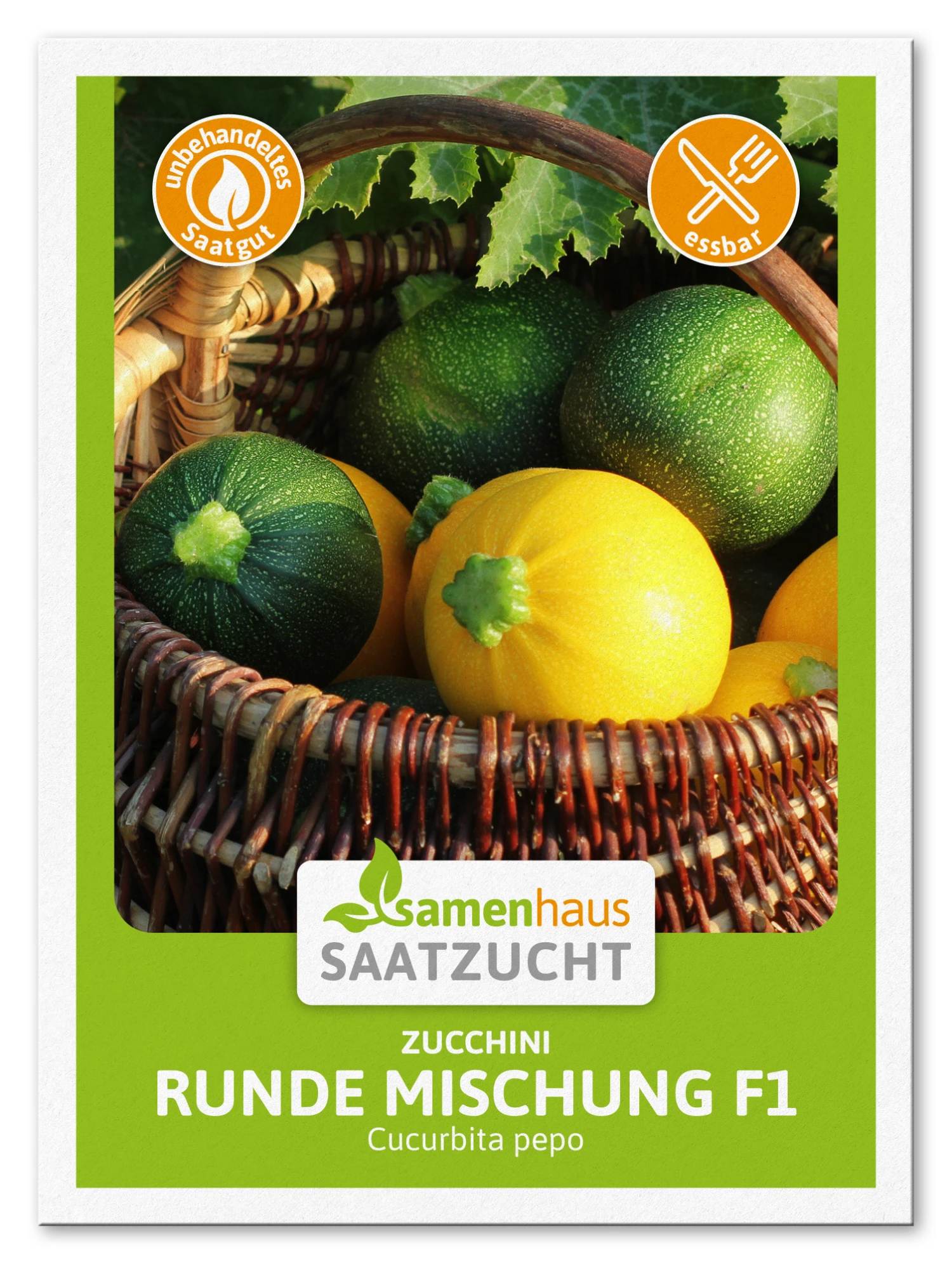 Die runde Zucchini-Mischung besteht aus 3 Sorten – der gelben One Ball F1, der dunkelgrünen Eight Ball F1 und der hellgrünen Geode F1. Die Zucchinis eignen sich zum Kochen, Braten, Dünsten und vieles mehr. Die Pflanzen haben einen strauchförmigen Wuchs und sind sehr ertragreich. Die Früchte können ab einer Größe von etwa 8 cm geerntet werden. Alle Sorten sind auch für Anfänger geeignet.